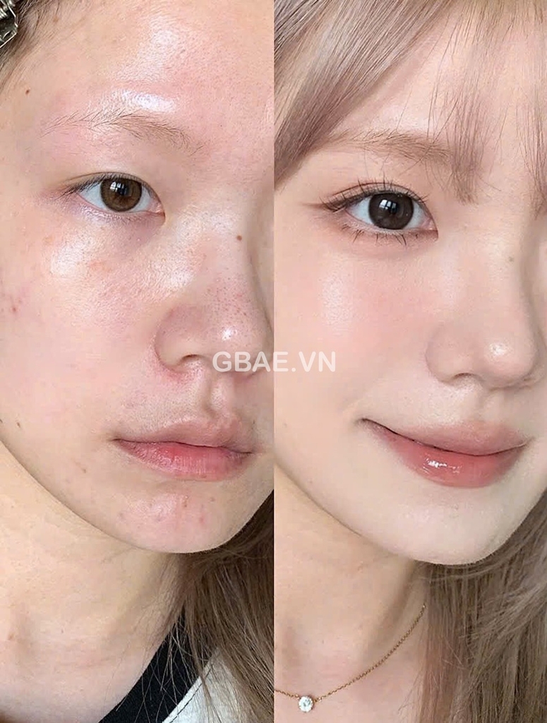 • Hiệu ứng glow mỏng nhẹ , tiệp da, vẫn là phong cách “clean girl” nhưng độ che phủ 10/10, chống nắng nhẹ nhàng nhé